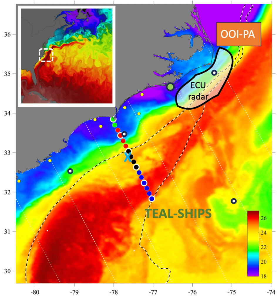 Along with several UNCW colleagues and UNC system partners, our proposal to sample the waters of the Cape Fear river plume out to the Gulf Stream has been funded! We have named the project Transect Expedition To Assess Land-To-Sea Habitats Via Interdisciplinary Process Studies (TEAL-SHIPS), and will be collecting measurements in collaboration with the Cape Fear Community College research vessel, the RV Cape Hatteras. Many more details to come over the next several years as we get this project underway.