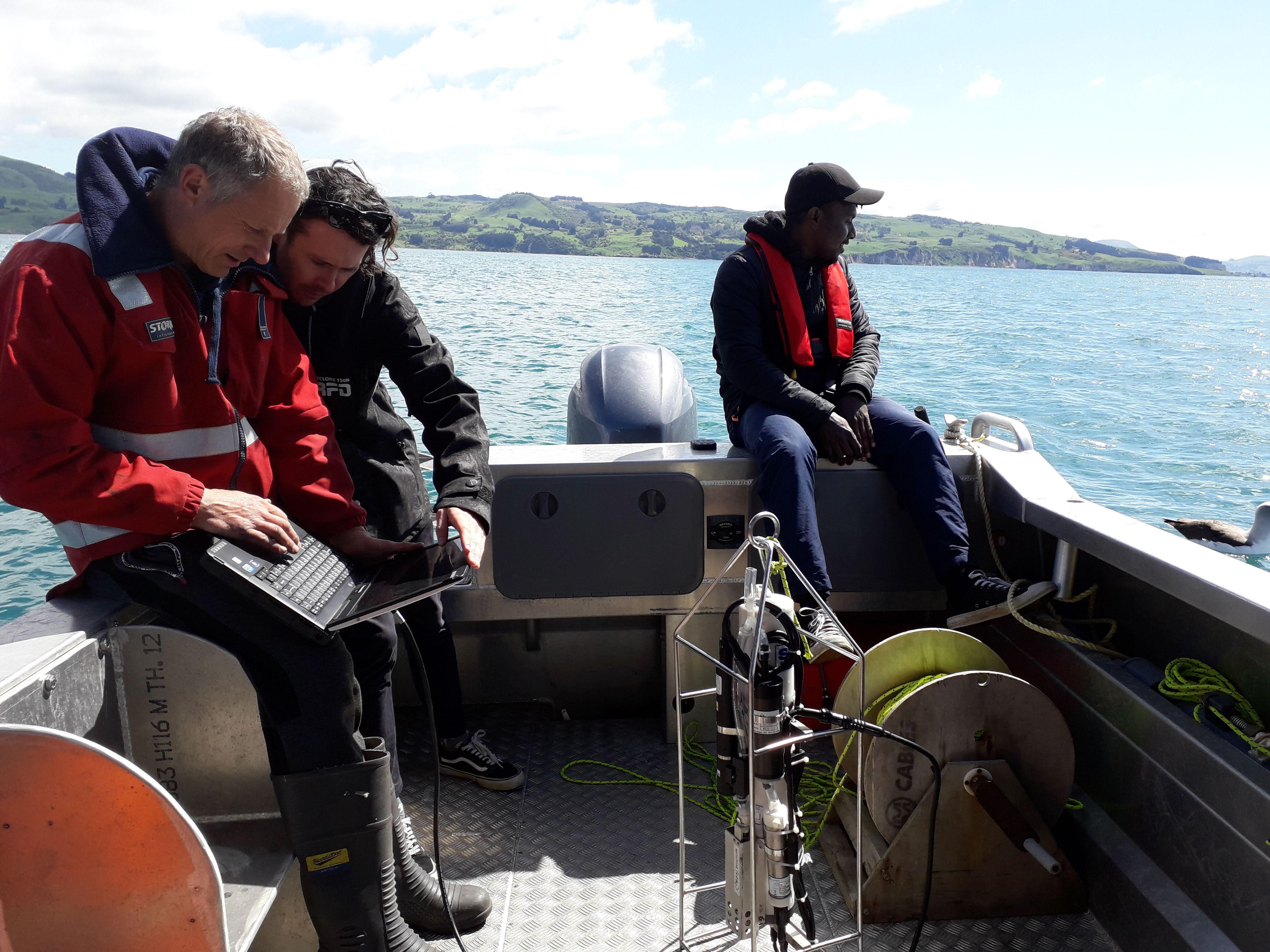 Our paper on shallow internal waves is published! The research documented internal waves at the mouth of Waitati inlet. Although we were interested in what goes in/out of Waitati, that topic was published years ago. This “offshore” story has taken awhile to finish, but I am very happy to have it out. We had a grand time doing the work and I thought it appropriate to post some pictures (Otago summer, 2018). From hallway mooring construction to cruising in RV Tūhura, oceanography delivers again.