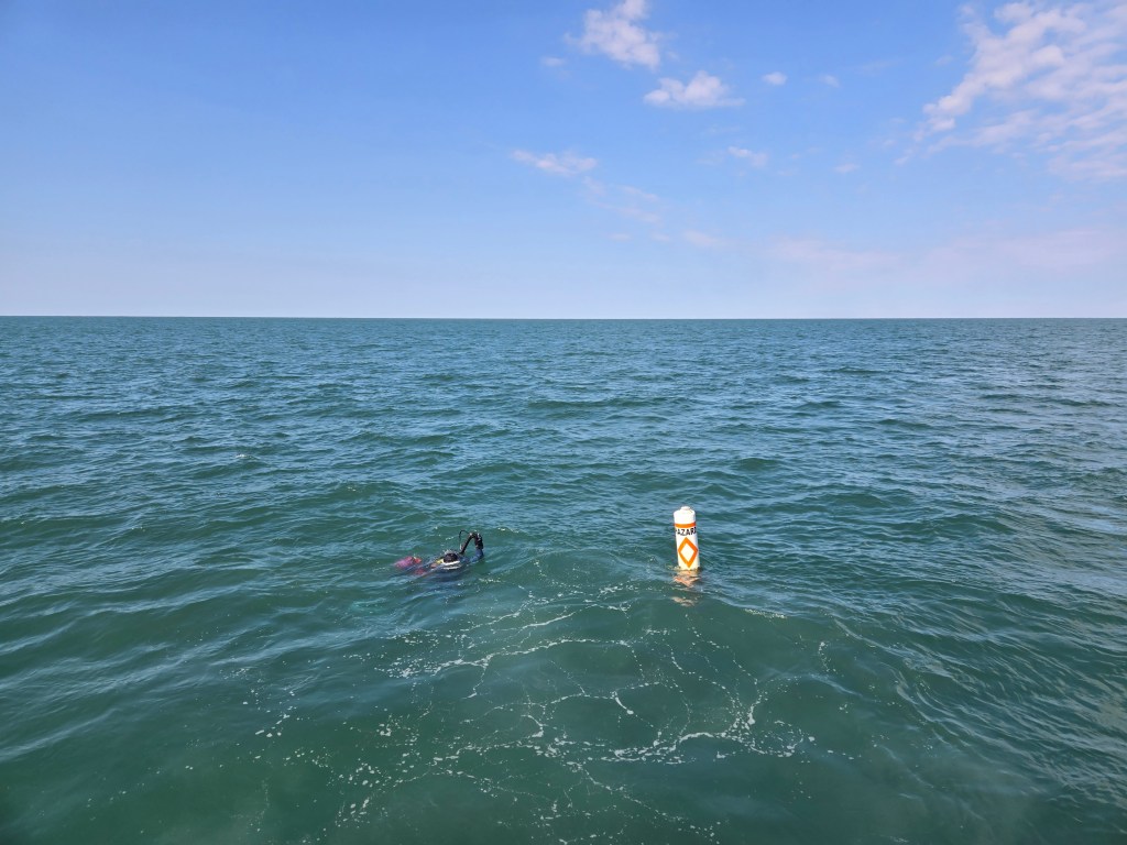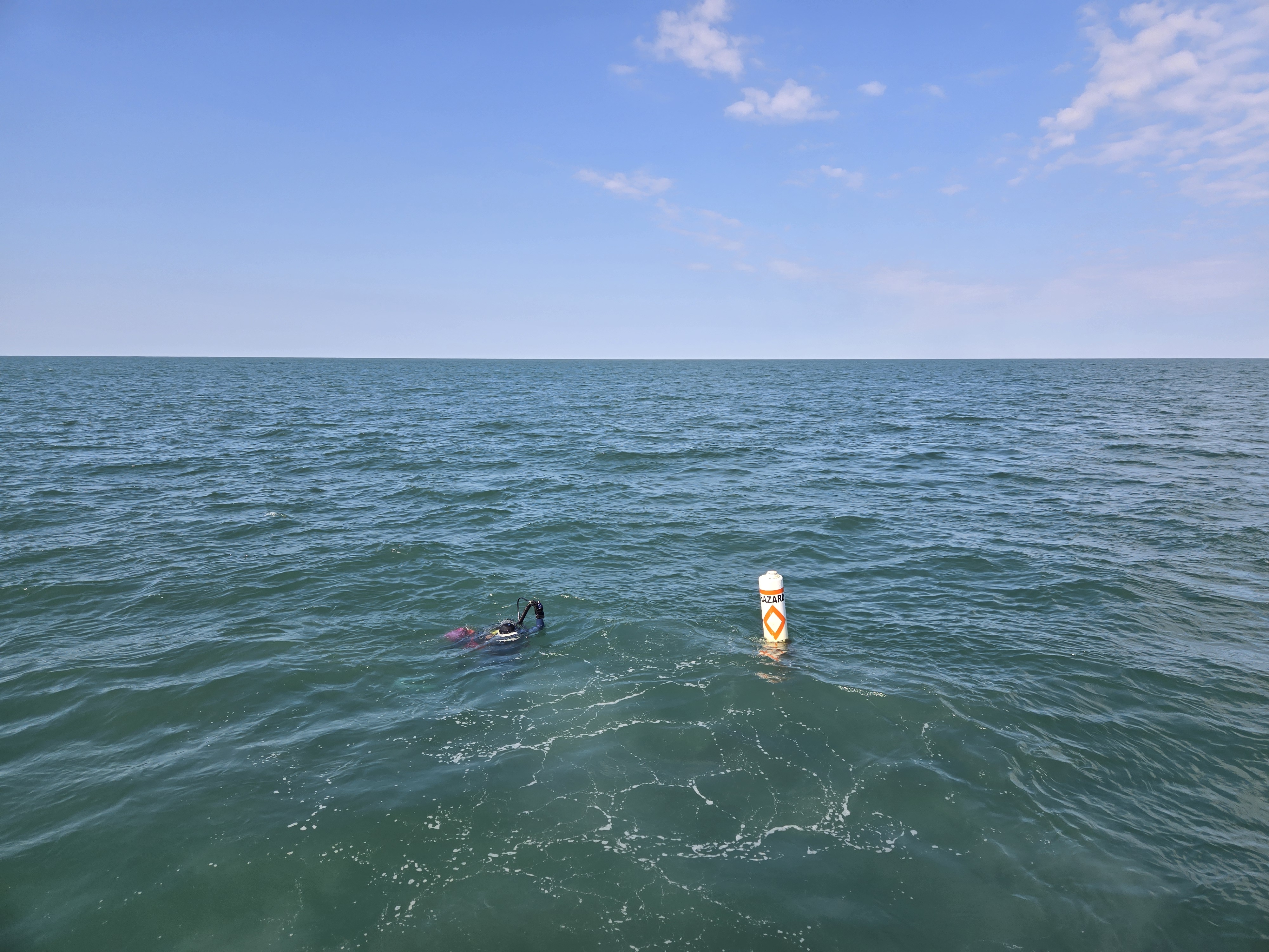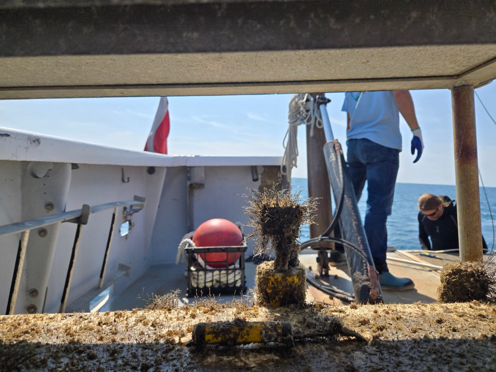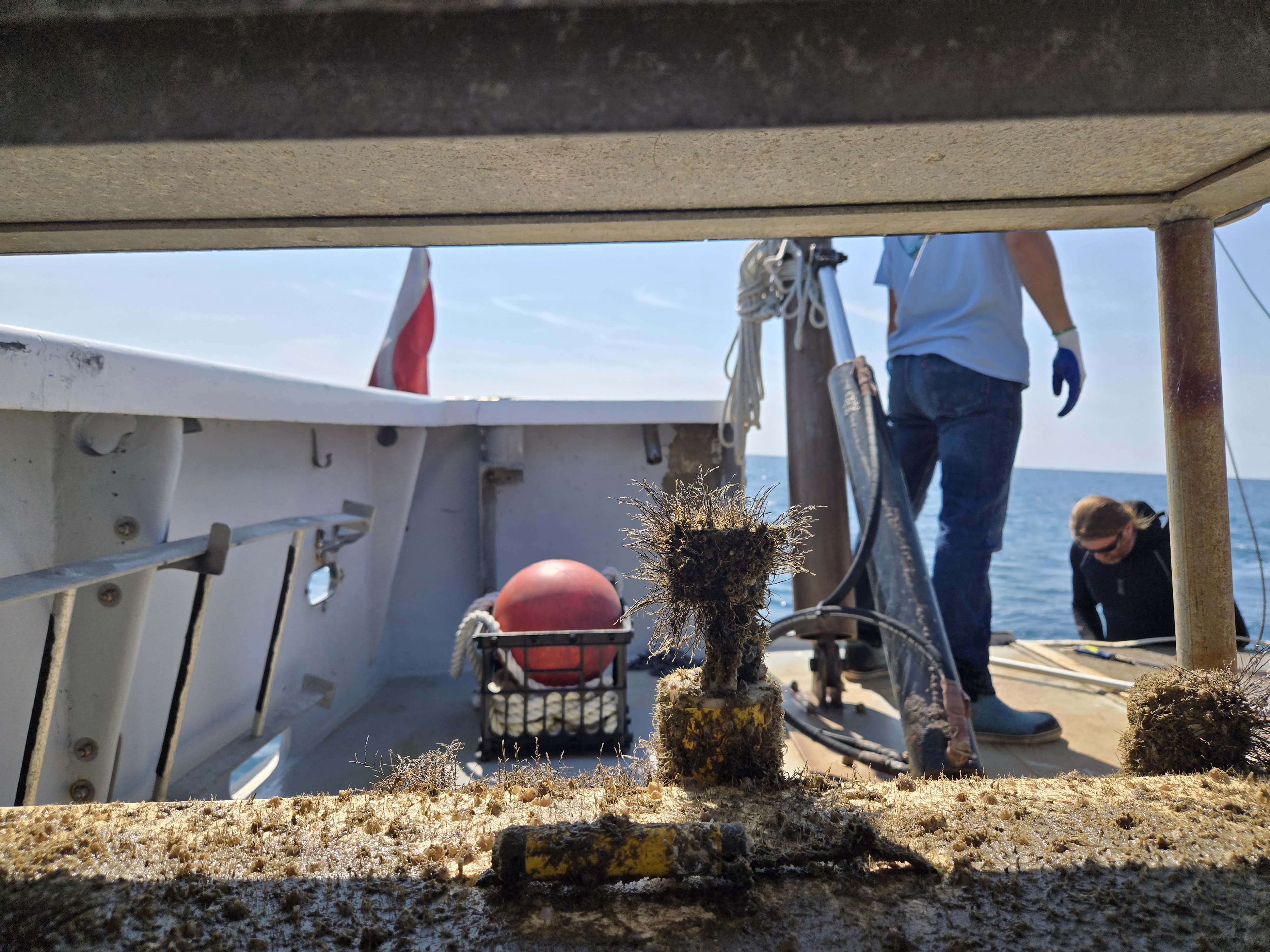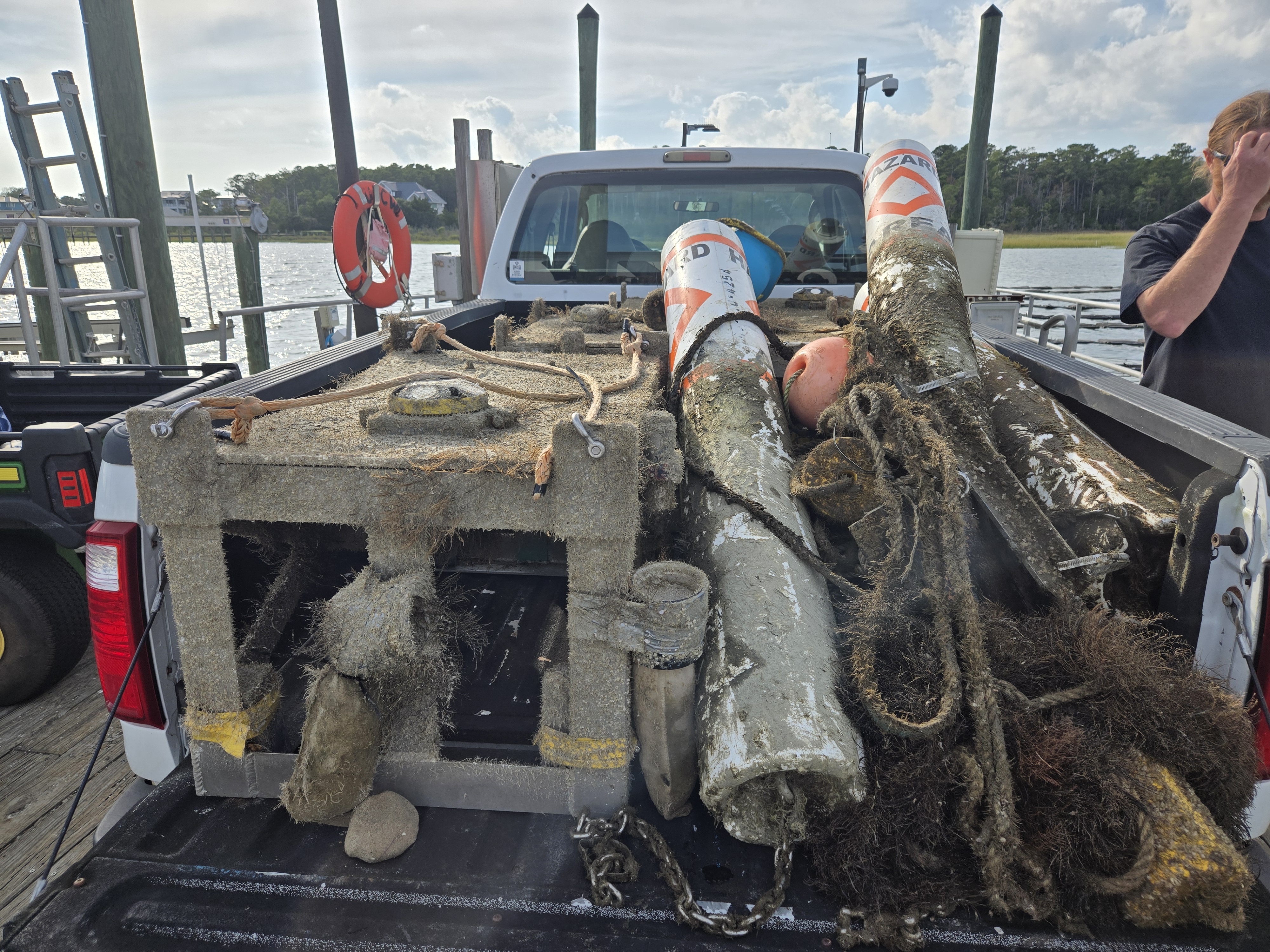 This was the final recovery of our lander + Spotter wave array deployed around Frying Pan Shoals. We got a great day from the weather gods and terrific assistance as always from our CMS operations staff and student volunteers. Some excellent stories to come based on these last two years of our sampling periods around the Shoals, but first pictures from this last day on the water: