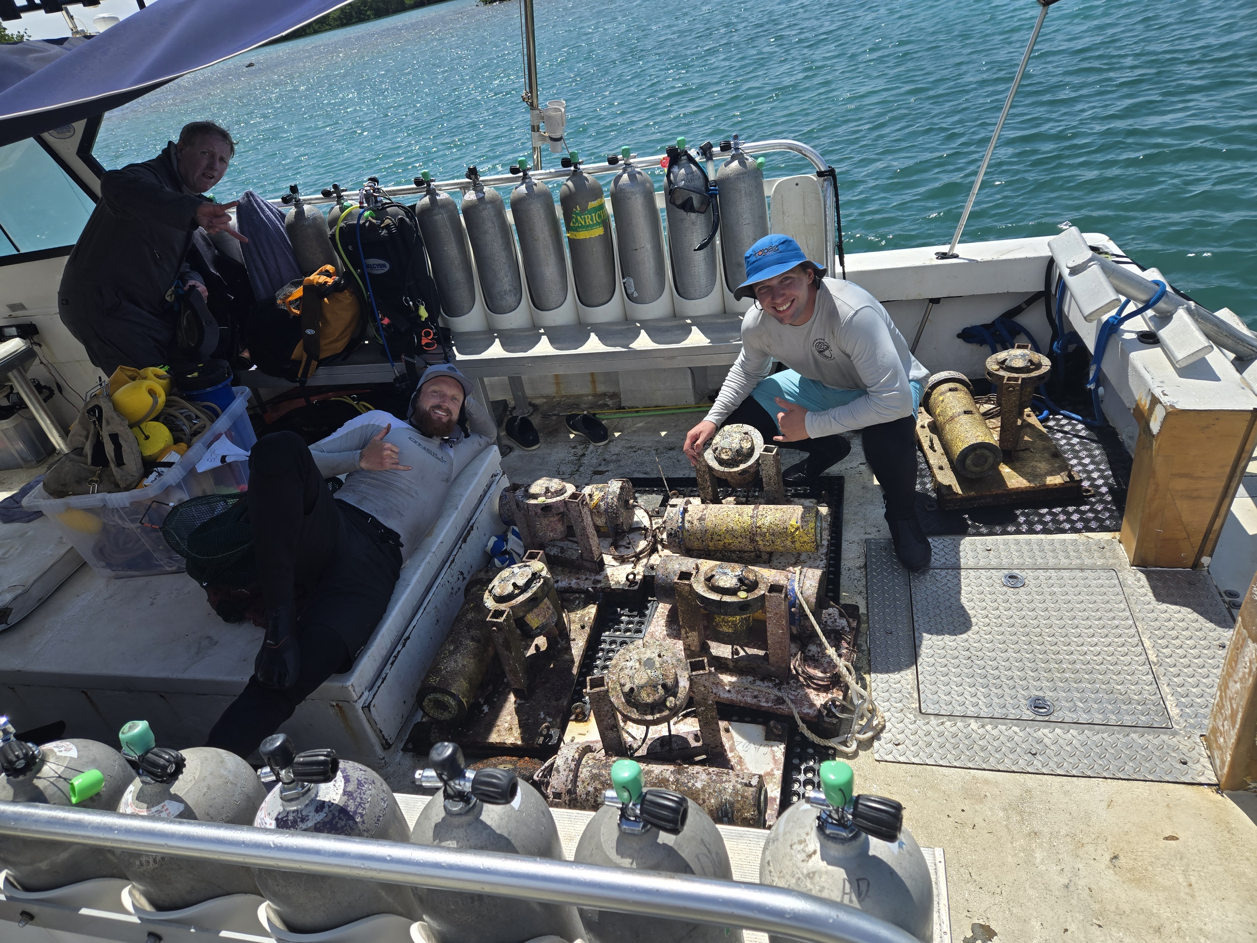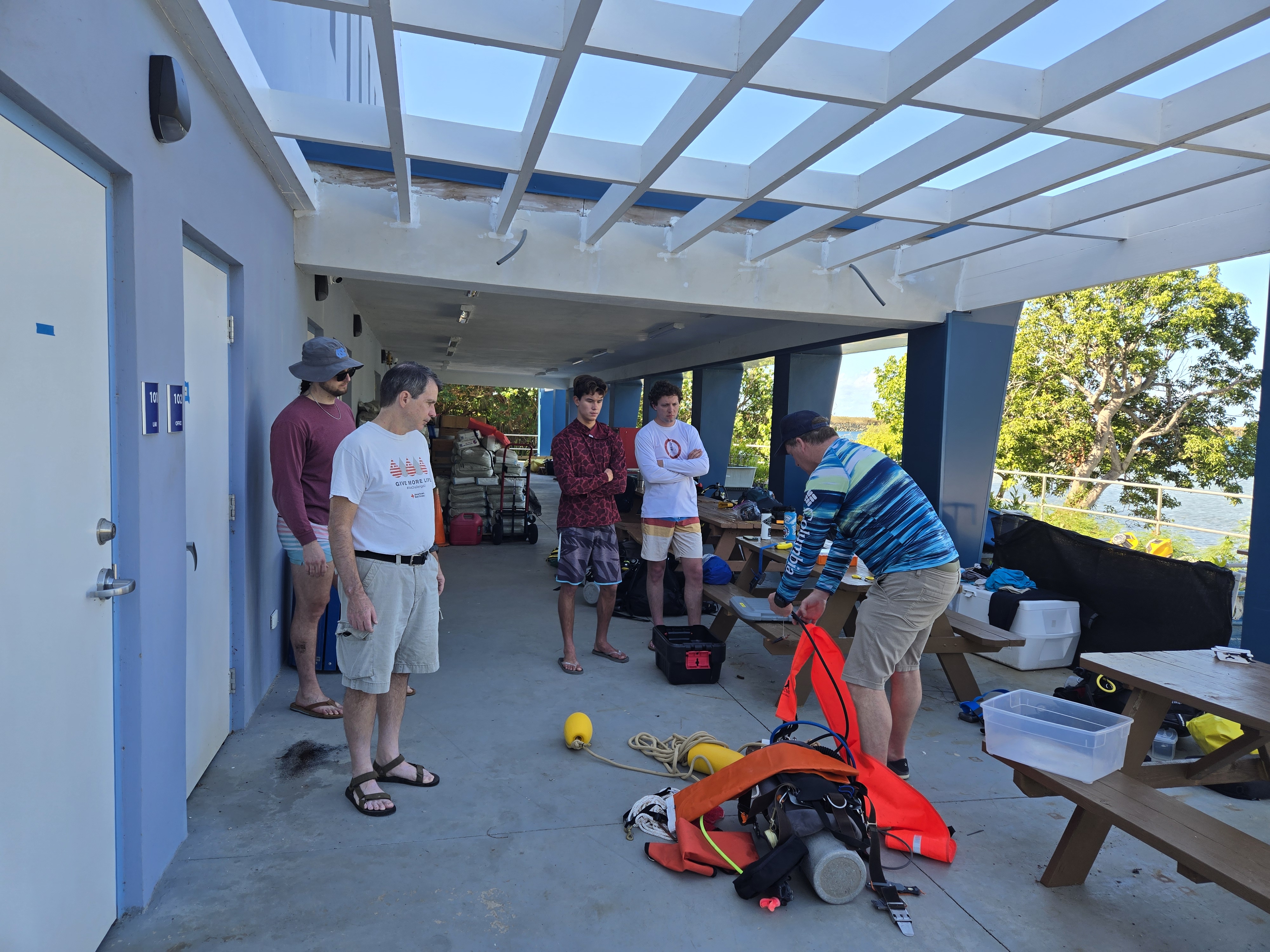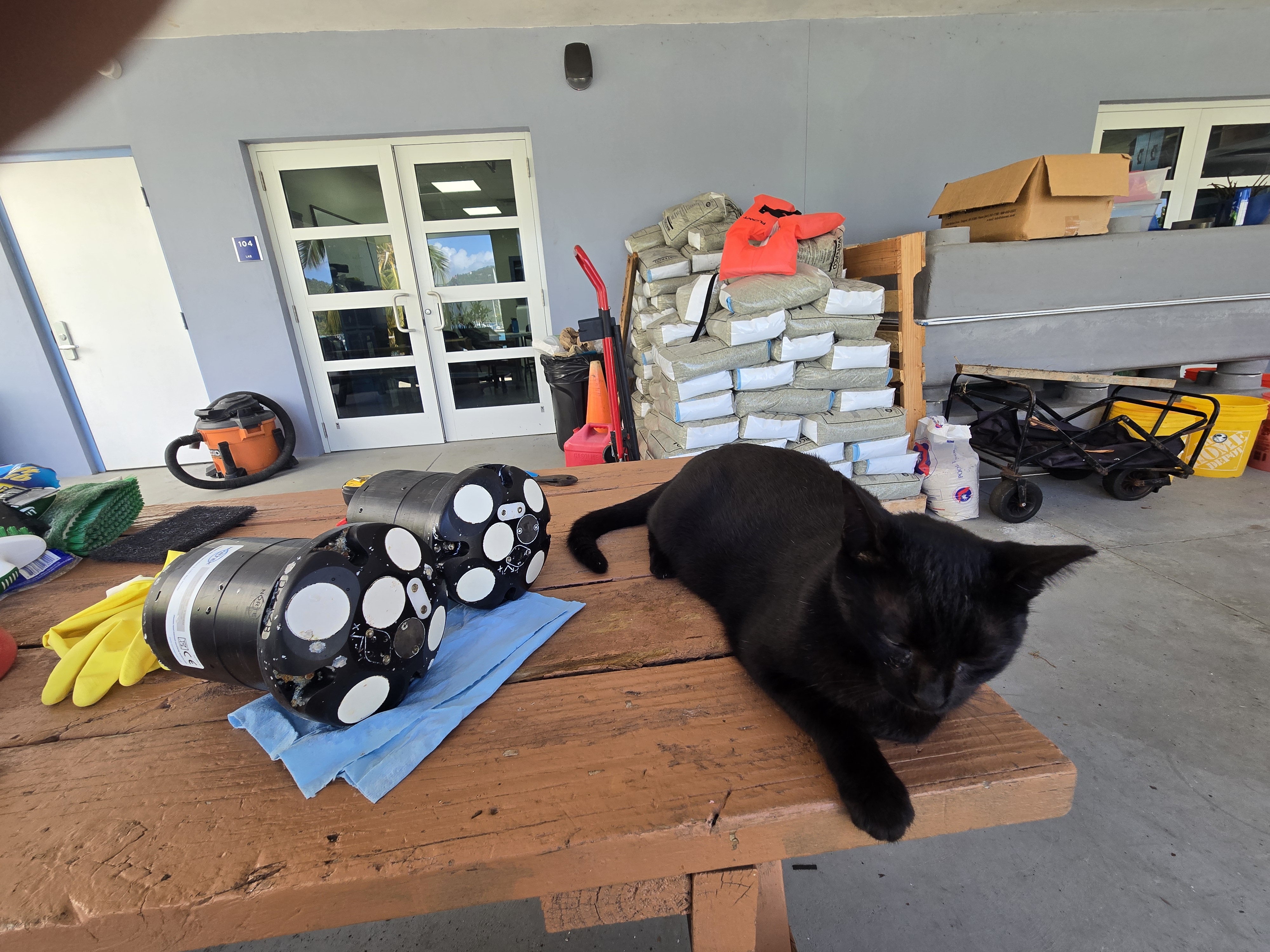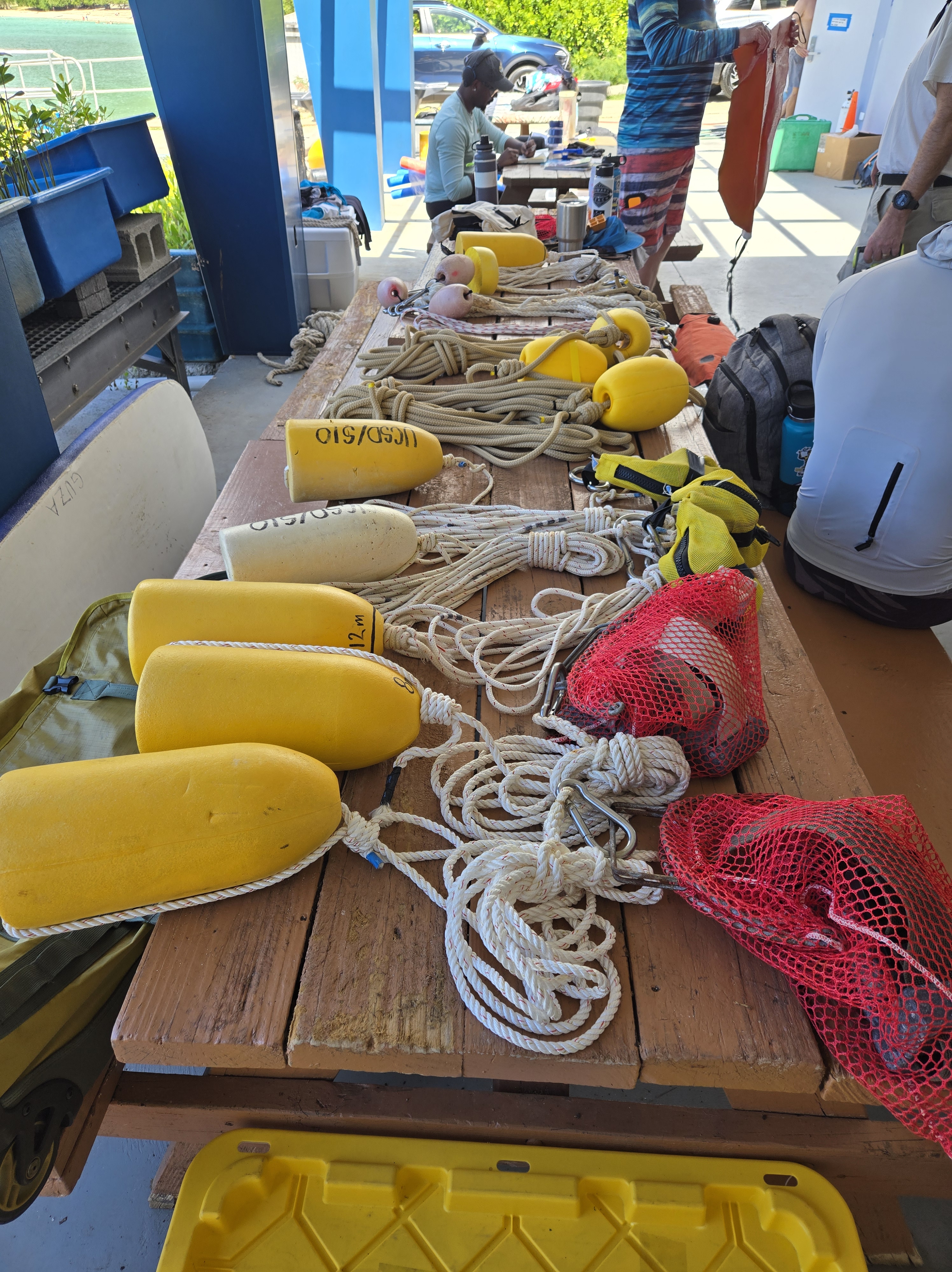 The 3 month experiment on the north shore of St. Thomas approaches completion. As usual, the field team kicked butt diving to recover instruments on and in between rocks, cliffs, crevices, nooks and crannies. Having pulled instruments from the coastal ocean of many places, I cannot get over how different this Caribbean bio-fouling looks. None of this is rust! As an added bonus, how fun to run into old friends and students. Shout out to Dr. Greg Guannel, Director of Caribbean Green Technology Center at UVI (Go Beavs!) and Drew Davey, PhD student at SIO (Go Hawks!)