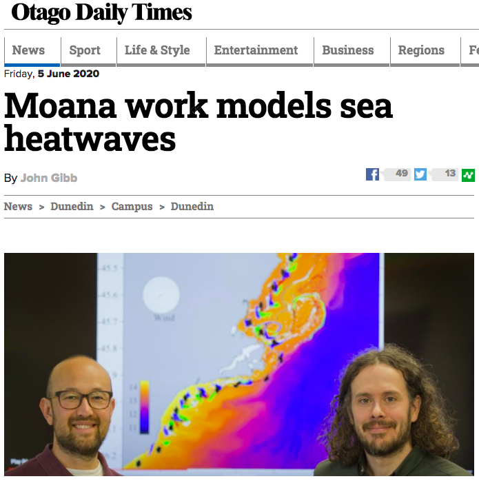 The New Zealand Ministers of Conservation and Primary Industries are planning a network of Marine Protected Areas around the South Island. During the consultation period, I submitted a letter with my perspective on marine connectivity built on interpreting regional physical oceanography and recent “virtual particle tracking” results using Moana Project numerical model output. You can find this letter here: